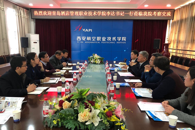 本网讯 (旅游与酒店管理学院) 12月6日-8日,学院党委书记李达、副院长商士海、副院长刁洪斌、总务处处长路永、空中乘务专业负责人刘真及专业教师鹿彦等一行6人赴西安航空职业技术学院、成都航空职业技术学院,就空中乘务专业办学思路及经验、实训室建设、实践教学模式和人才培养模式等方面进行考察交流。