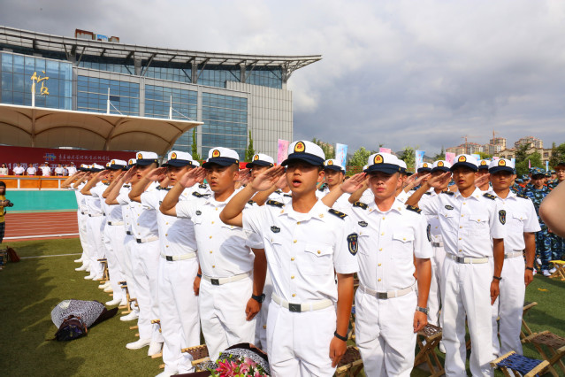 学院院长姜玉鹏致辞发言,代表学院向加入学院的5000多名新同学表示热烈欢迎,向辛勤养育他们的父母表示崇高的敬意,向关心和支持学院新生军训工作的海军潜艇学院承训官兵表示衷心感谢。他指出,今年入校的新生00后占据了主体,一代人有一代人使命,每一代人都要经历自己的成长。“00后”的身上,有着时代的特点,同样也有着追梦逐梦、筑梦圆梦的价值追求和非凡气质。姜院长介绍了学院的历史与沿革、现状,向新同学提出了三个大学之问:新时代青年该有什么样的担当,该怎样去实现上大学的目的和任务,该怎样去适应新的学习和生活环境,希望同学们认真思考,努力实践,用自己的行动和成绩,给出完美答案。军训之时,希望大家通过军训的磨砺,强化爱国奉献的崇高理想,磨砺坚韧不拔的坚定意志,培养艰苦奋斗的拼搏精神,塑造团结协作的集体意识,陶冶积极健康的道德情操,造就乐观向上的人生品格,出成效、有收获、长真知、上水平。