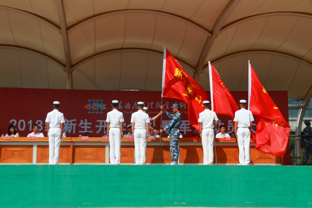 中国人民解放军海军潜艇学院潜艇兵训练基地政治委员赵华锋作了讲话,向考入我院的新生表示祝贺,希望广大同学以饱满的热情、积极的态度、昂扬的面貌、良好的心态投身军训,学习军事知识,磨练思想意志,开启大学崭新的生活。随后,新生军训团团长杜韫博宣读了军训计划。