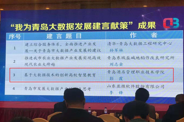 此次获奖说明了我校紧跟国家大数据战略及青岛市数据建市的方向,科学设置专业、认真组织教师进行课题研究,取得了丰硕成果,得到了社会认可。本次获奖得了人民网等主流媒体报道。