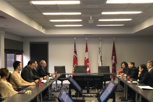 访问交流期间,宫恩龙一行与我院正在加拿大卡纳多学院培训的3名教师和正在该学院学习的7名我院留学生进行了会谈,了解了项目的进展情况;观摩了西餐烹饪专业的课堂演示;参观了工程专业的实训基地和国际留学生公寓,详细了解相关的管理规定和模式。