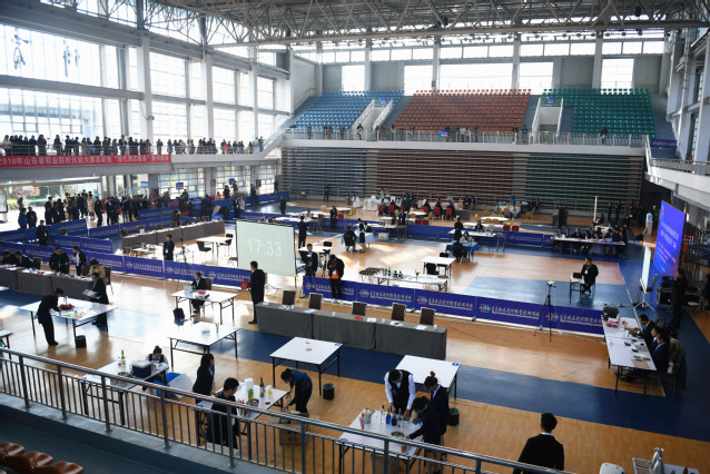大赛旨在推动高职酒店管理专业教育教学改革,促进高素质、技术技能型酒店专业人才培养,以适应当今酒店业国际化发展需要。大赛现场,每组3名选手同时、同场进行比赛,参赛选手以饱满的精神面貌、娴熟的专业技能、精诚协作的团队精神为大家奉献了一场精彩的视觉盛宴。
