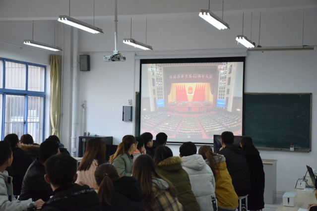 本网讯(党委宣传部 于克晓)12月18日上午10时,庆祝改革开放40周年大会在人民大会堂举行。中共中央总书记、国家主席、中央军委主席习近平出席大会并发表重要讲话。学院各总支、支部、各部门通过多种方式收听收看大会实况。