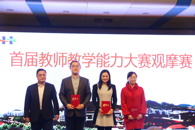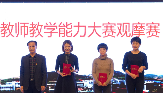 首届教师教学能力大赛分为预赛、复赛、决赛和观摩赛4个环节。预赛环节,广泛发动教师,积极参与,共有90名教师提交了参赛作品,参加到教学比赛中;复赛环节,42名教师作品送交省内外3名专家评审,既保证了比赛客观公正,各位专家也有针对性的提出了书面指导意见;决赛环节,21名教师进行了现场答辩,评出了一等奖9名,2等奖12名。观摩赛环节, 4名选手按照国赛流程,真实展示了自己的作品。