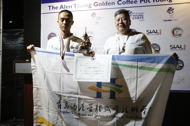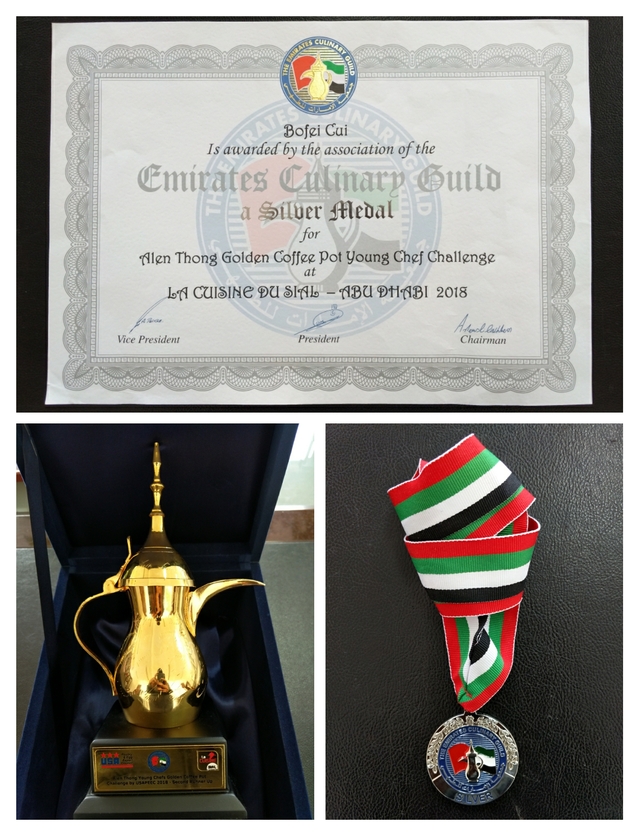 本网讯(烹饪学院 庞阳)近日,从阿拉伯联合酋长国首都阿布扎比传来喜讯,在该地举办的第二届“艾伦·冬金咖啡壶杯”青年厨师挑战赛上,学院学生崔博飞与来自国内其他四所职业院校的五名选手组成的中国代表队斩获团体银牌。