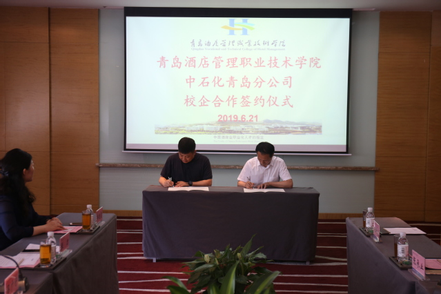 学院招生就业办公室副主任张承业、工商管理学院副院长赵琪、工商管理学院招生就业实习实训办公室副主任刘卿文,中石化青岛分公司副总经理张力、经理办公室主任金文、人事处主任单晓霞、人事处主办于洋出席签约仪式。
