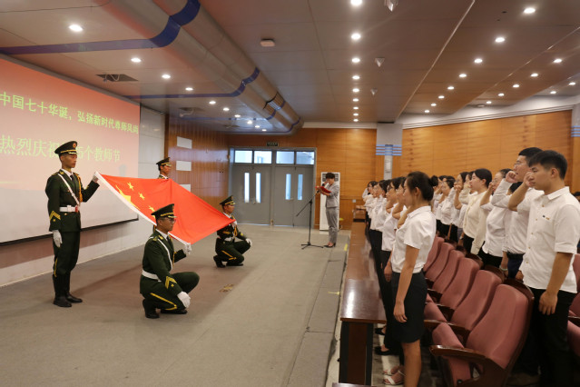 报告会前,学院举行了新教师入职宣誓仪式,2019年新入职的教师面向国旗庄严宣誓。通过宣誓,广大教师进一步增强了职业自豪感、荣誉感和使命感,坚定了为教育事业和中华民族伟大复兴而努力奋斗的信心和决心。