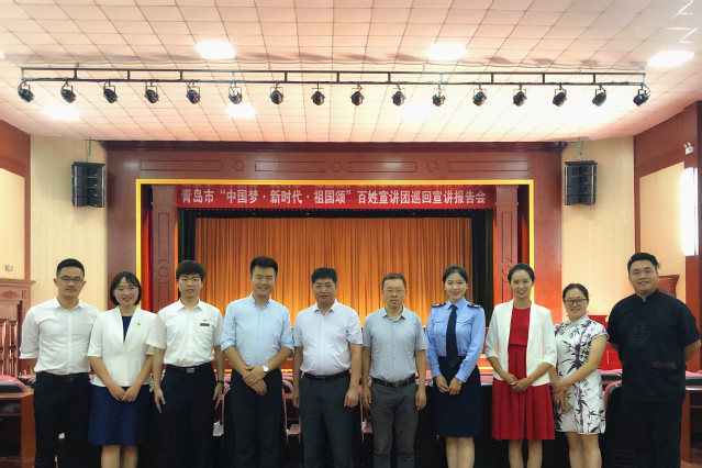 宣讲团成员均为青岛市“中国梦·新时代·祖国颂”宣讲大赛的获奖人员。在巡回宣讲中,成员们用现场讲述、视频再现等形式,传递亲历、亲闻、亲为的精彩故事,紧紧围绕庆祝新中国成立70周年这条主线,讲好中国故事、讲好中国共产党故事、讲好新时代中国特色社会主义故事,充分展示新中国成立70年特别是改革开放以来党和国家的光辉历程、伟大成就和宝贵经验,激发爱国热情,强化爱国之志,凝聚爱国力量。