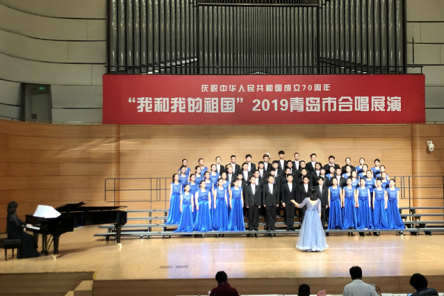 本网讯(团委 吴春雷)9月26日至29日,“我和我的祖国”2019青岛市合唱展演在青岛大剧院举行。学院合唱团与岛城13所高校合唱团同台竞技,为祖国唱响赞歌,获得一致好评。