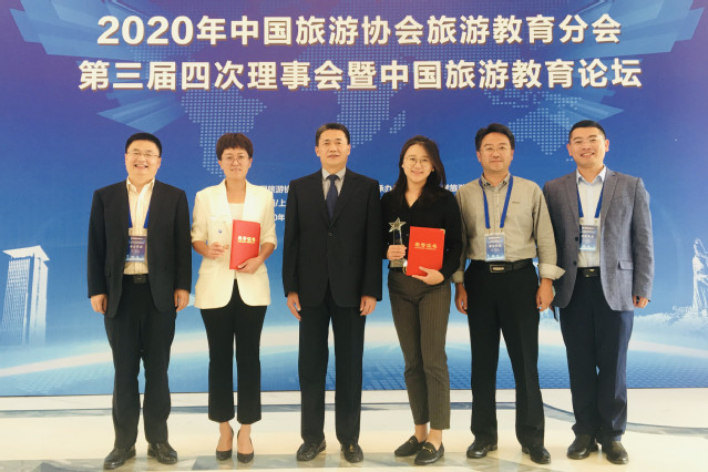 本网讯(文旅学院 酒店管理学院)10月23日-25日,学院院长姜玉鹏带队参加中国旅游协会旅游教育分会第三届四次理事会暨中国旅游教育论坛。会上,学院获评“2020年度优秀会员单位”,学院尹萍老师获评旅游教育名师、朱丽男老师获评旅游教育杰出青年。