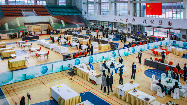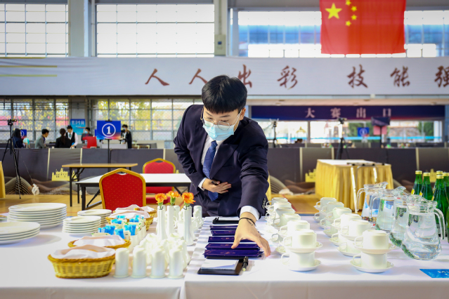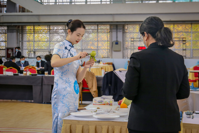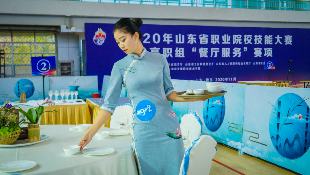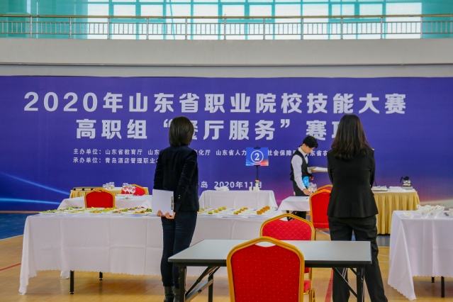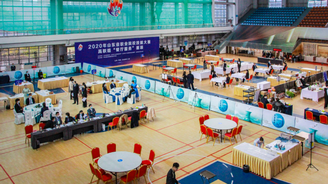 本网讯(党委宣传统战部 李代玉)11月19日,2020年山东省职业院校技能大赛高职组“餐厅服务”赛项在学院体育馆继续精彩进行。气温骤降,学院体育馆暖意融融。大赛现场,选手们精神焕发、风采动人,裁判员团队认真负责、专注选手表现,志愿者队伍坚守岗位、热情体贴服务。在学院各单位的协同配合下,大赛各项工作有条不紊、秩序井然。