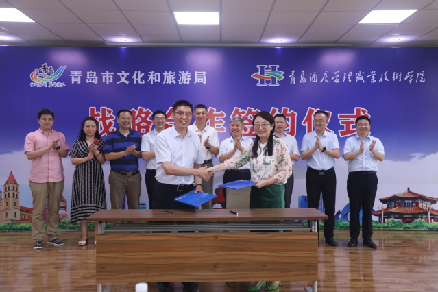 成立了山东文旅产业学院、顺丰运营管理学院、舜和餐饮产业学院3个混合制特点的产业学院。与青岛文旅局共建青岛市旅游大数据中心。融入青岛打造世界工业互联网之都,与海尔卡奥斯签约共研共建工业互联网+酒店业资源库。通过订单培养、学徒培养、合作企业接收实习学生等形式,促进职业教育和产业人才需求精准对接。