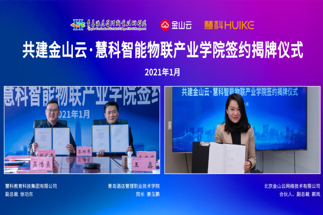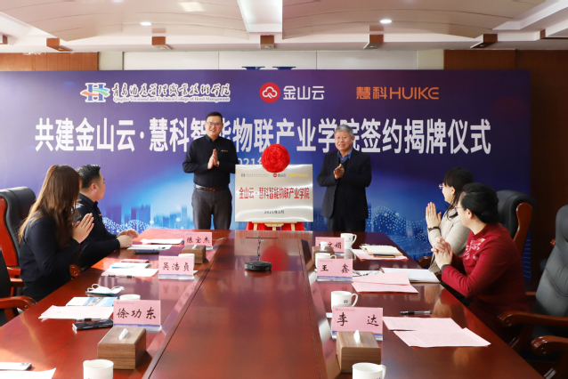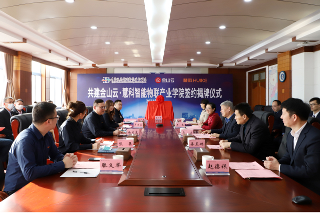 北京金山云网络技术有限公司AIOT事业部产研总经理赵勇、慧科教育科技集团有限公司智能物联产研中心负责人李兴华、信息工程技术学院党总支书记赵德银、副院长衣文娟等相关人员参加签约揭牌仪式。