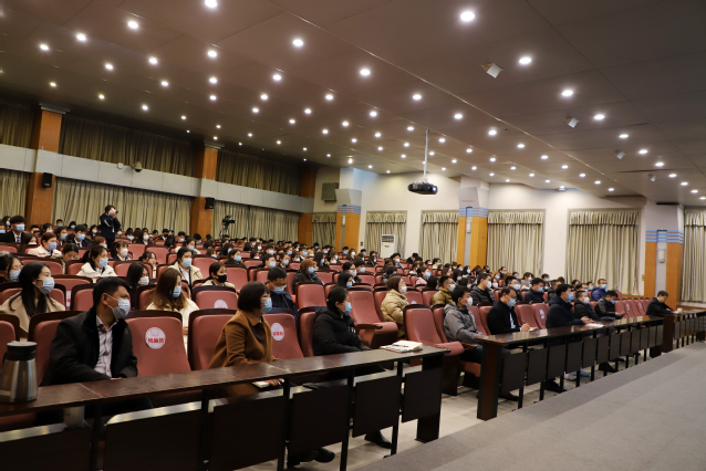 学院相关职能部门负责人、各二级学院党总支书记、学工办主任、辅导员、班主任代表和学生代表在学术报告厅主会场听讲,学院教职员工、学生家长等同步收看网络直播。