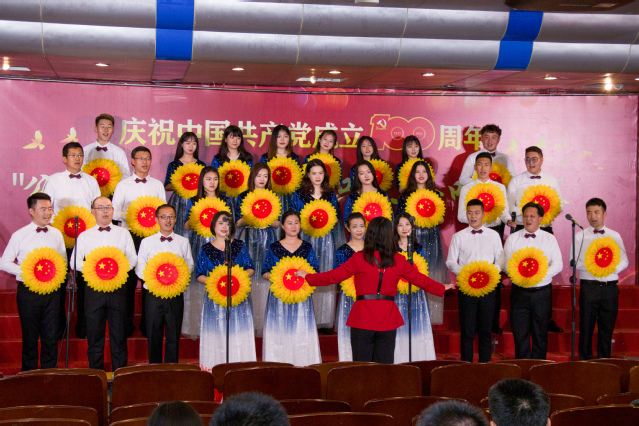 一首首主题鲜明、饱含深情的歌曲,讴歌了党的光辉伟业,点燃了每一位教职工的爱党爱国热情,现场掌声阵阵、气氛热烈。