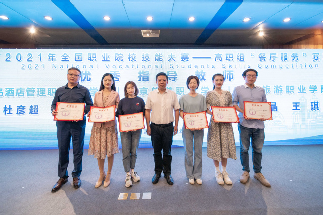 易红燕宣布竞赛成绩。其中,山东省代表队等3支代表队荣获团体一等奖,辽宁省代表队等6支代表队荣获团体二等奖,广西壮族自治区代表队等10支代表队荣获团体三等奖;来自威尼斯WNS9778、南京旅游职业学院、浙江旅游职业学院的6名教师荣获“优秀指导教师”。在欢快的乐曲声中,学院党委书记李达等与会领导为获奖代表队和优秀指导教师颁奖。