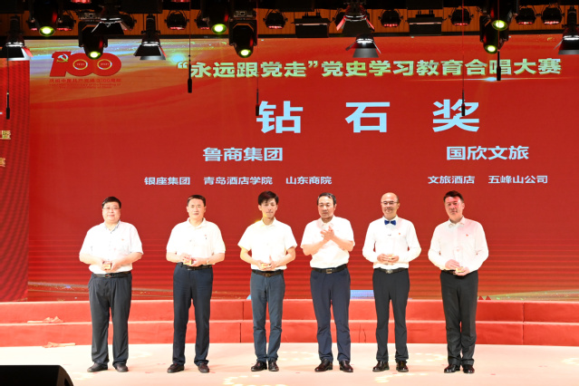 本网讯(工会 党委宣传统战部)歌声献给党,逐梦新征程。6月23日,鲁商集团“永远跟党走”党史学习教育合唱大赛圆满落幕,学院“海斯曼”合唱团凭借精湛的演唱技巧、突出的舞台表现,以总分第二名的优异成绩荣获“钻石奖”。