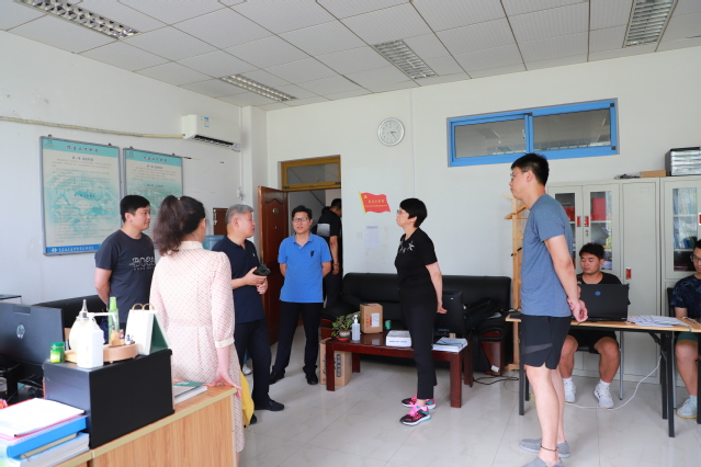 李达一行先后到安全保卫处、总务处、招生就业办公室等部门进行了慰问,详细了解了巡逻值守、疫情防控、基建维修、招生录取等情况。李达高度赞扬了工作人员认真、负责的工作态度,感谢大家冒着高温酷暑坚守岗位,叮嘱大家在注意防暑降温的同时,要做好疫情防控相关工作,切实提高安全意识,保障自身的安全健康。