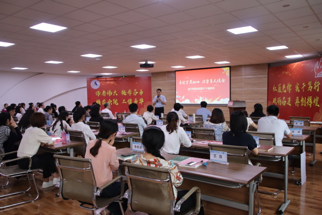 会计学院组织全体教师观看《薪火之光》微电影,镜头里每一位老师都是主角,温馨的场景让现场的气氛渐浓,一起重温《会计学院教师从教准则》,听取会计学院副院长刘进涛关于“红雁先锋”教学创新团队建设情况汇报,观看了青年教师杨晓彤的课程展示,聆听了李真、高琳、华亭玉三位老师的从教心得分享,并向取得省级荣誉的老师们颁发奖金、证书,鼓励教师以更加饱满的热情投入到教育教学。