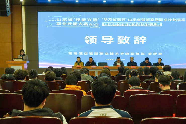 本次大赛由山东省轻工集体企业联社、山东省轻工纺织烟草工会委员会主办,山东省智能家居协会、我校、山东海创智教数字科技有限公司承办,青岛市中华职教社、山东华方智联科技股份有限公司协办。本次竞赛主要考查物联网安装调试员在实际用户服务场景中的职业技能水平,内容包括物联网采集网络搭建技术、智能硬件联动设计、传感器采集网络构建技术等多个核心任务,全面评估选手在操作过程中的工作技能、工艺水平、完成速度以及综合职业素养。