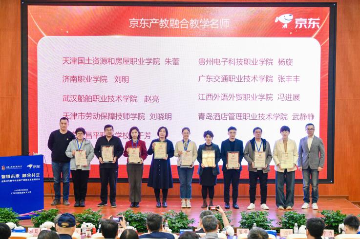 会上,各参会单位围绕现代商贸物流创新人才培养、智能供应链产教融合共同体人才培养等主题展开了深入的研讨及交流,会议发布了京东集团产教融合优秀成果。经严格评审,学校现代物流管理专业负责人武静静老师从全国300多名申报教师中脱颖而出,与来自天津交通大学等院校的30名教师共同获评“京东产教融合教学名师”称号。该荣誉的获取充分彰显了我校在深化产教协同育人、强化“双师型”教学团队建设等方面的成效,为学校商贸专业群的高质量建设与特色化发展筑牢了师资根基。