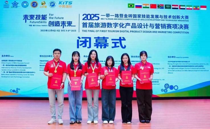 本网讯(文旅学院 杨安鸽)近日,2025“一带一路”暨金砖国家技能发展与技术创新大赛首届旅游数字化产品设计与营销赛项全国总决赛圆满落幕。我校文旅学院师生在激烈角逐中脱颖而出、喜获佳绩,其中,田超、高雪、杨安鸽三位老师荣获教师组一等奖,刘晓倩、刘晓宇、王一涵三位同学荣获职教组二等奖,学校荣获最佳组织奖。