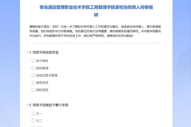 为真实了解家长心声,增强工作的针对性,学院面向全体学生家长发布了《家校协同育人问卷调研》。调研内容重点涵盖家校沟通现状、家长育人核心诉求及家校共建参与意愿三个维度。调研数据显示,多数家长希望更深入了解学校人才培养方案,并表现出较高的参与学校教育管理的意愿。此次调研不仅摸清了家长的关注点和困惑点,也为学院后续开展分类指导和精准育人提供了重要的数据参考。