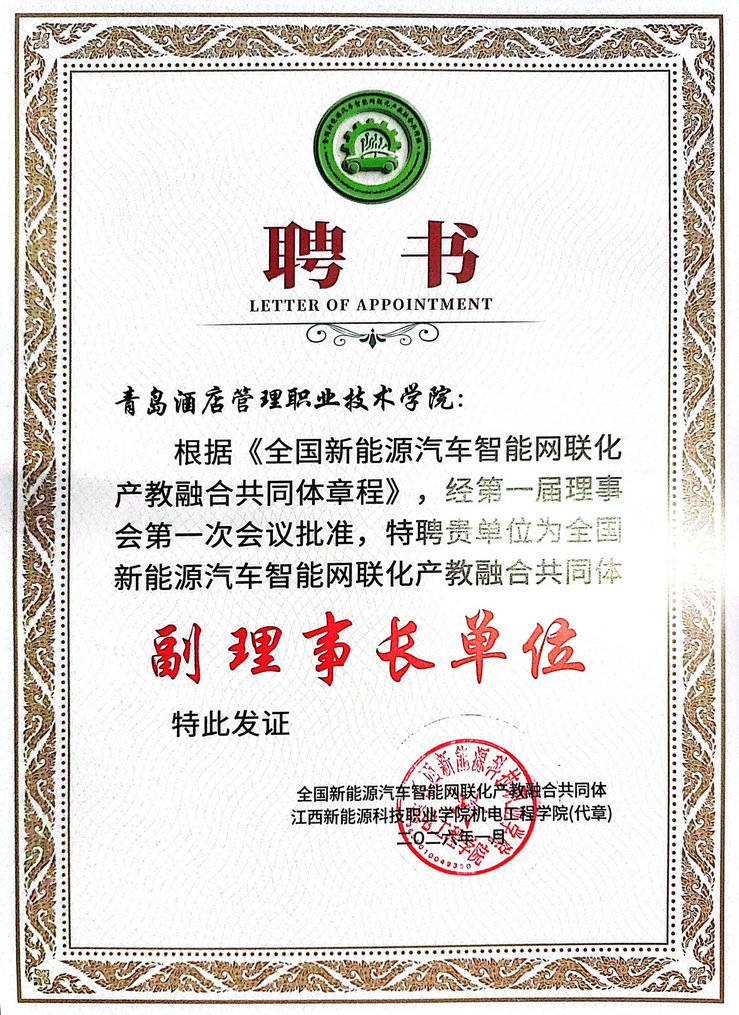 本网讯(酒店工程学院 吴洋)近日,全国新能源汽车智能网联化产教融合共同体正式成立,学校入选副理事长单位。